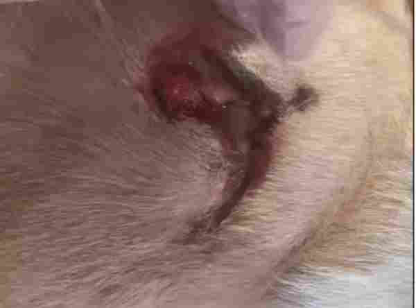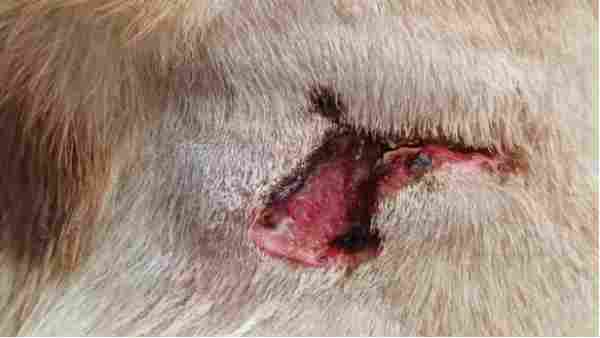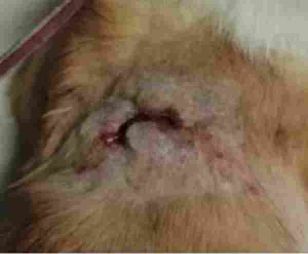 第二周:宠主因工作出差未能及时喂药,导致狗狗断药1天。同时,伤口不慎沾水,出现了感染迹象。这一情况提醒我们,在治疗过程中,宠物主人的配合与细心照料至关重要。