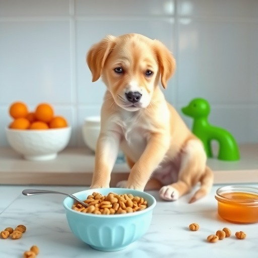 在这个时期,可以开始逐渐引入辅食,以帮助狗宝宝逐渐适应固体食物。开始时,将辅食用温水泡软,然后慢慢添加干狗粮,直到完全转换为干狗粮。