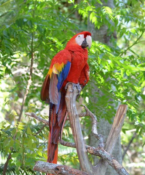 金刚鹦鹉的红色羽毛如火焰般绽放,它们代表着热情和活力,为人们带来无尽的欢乐。