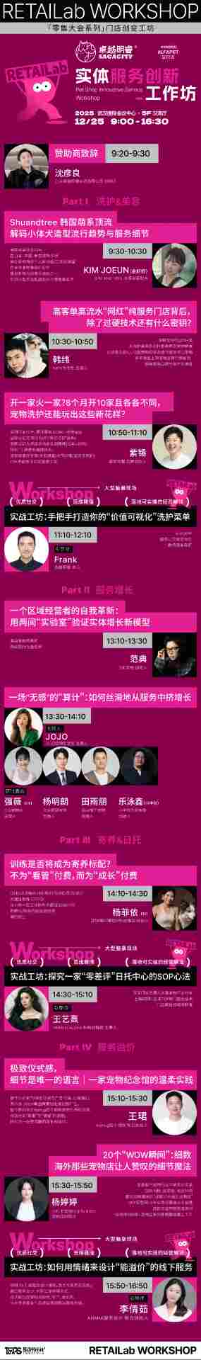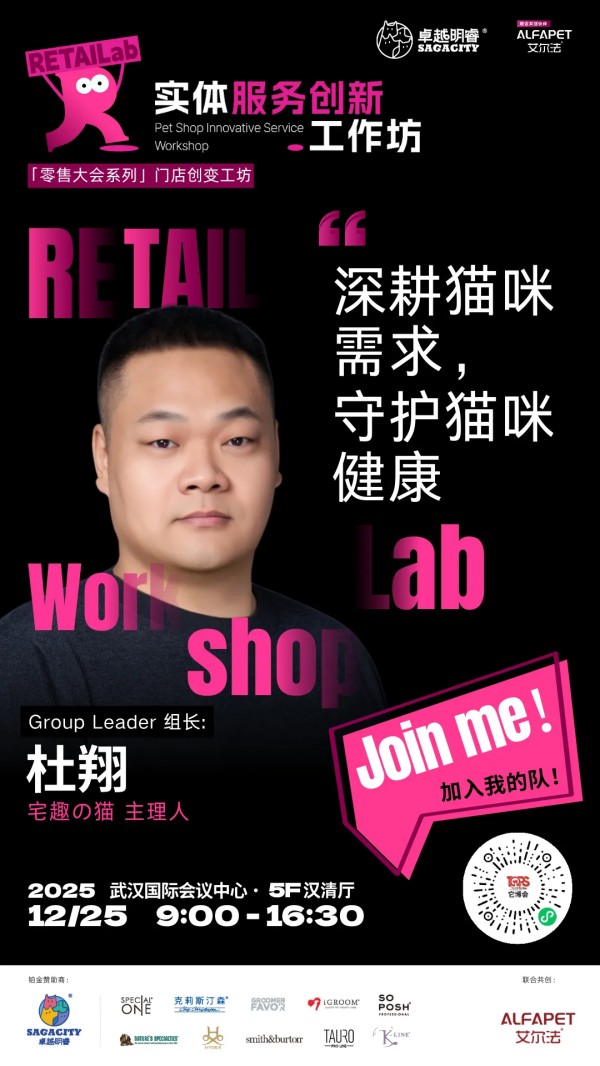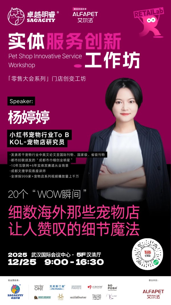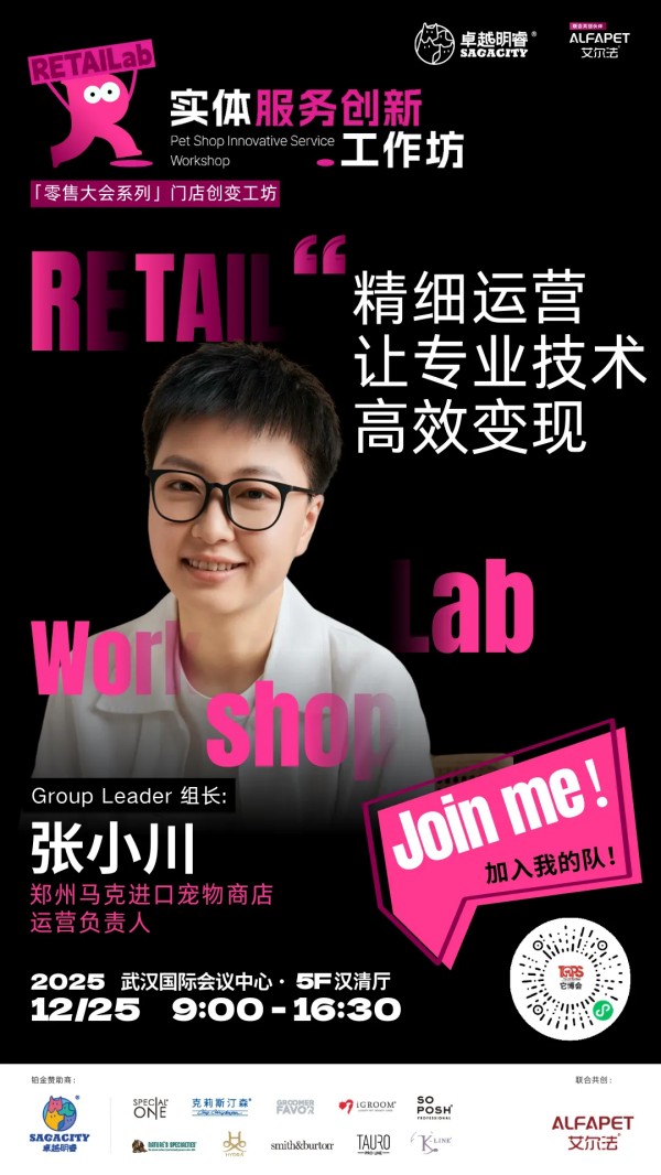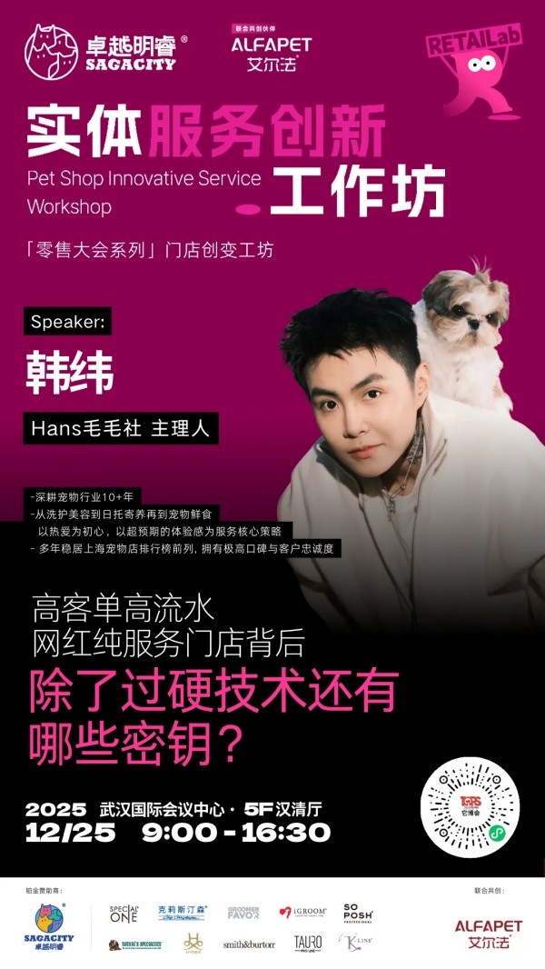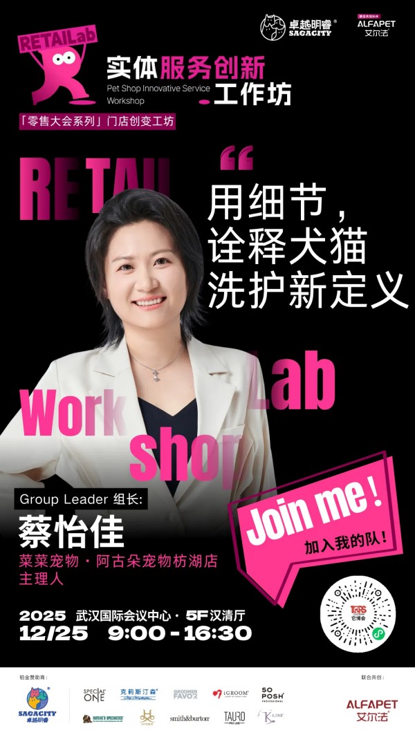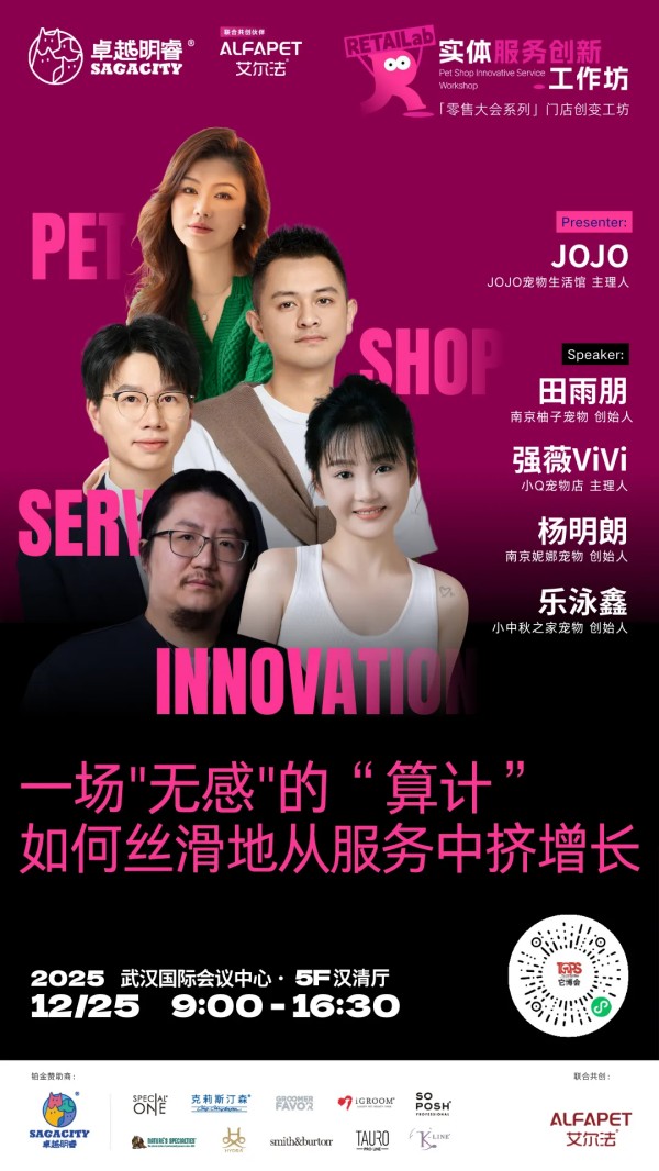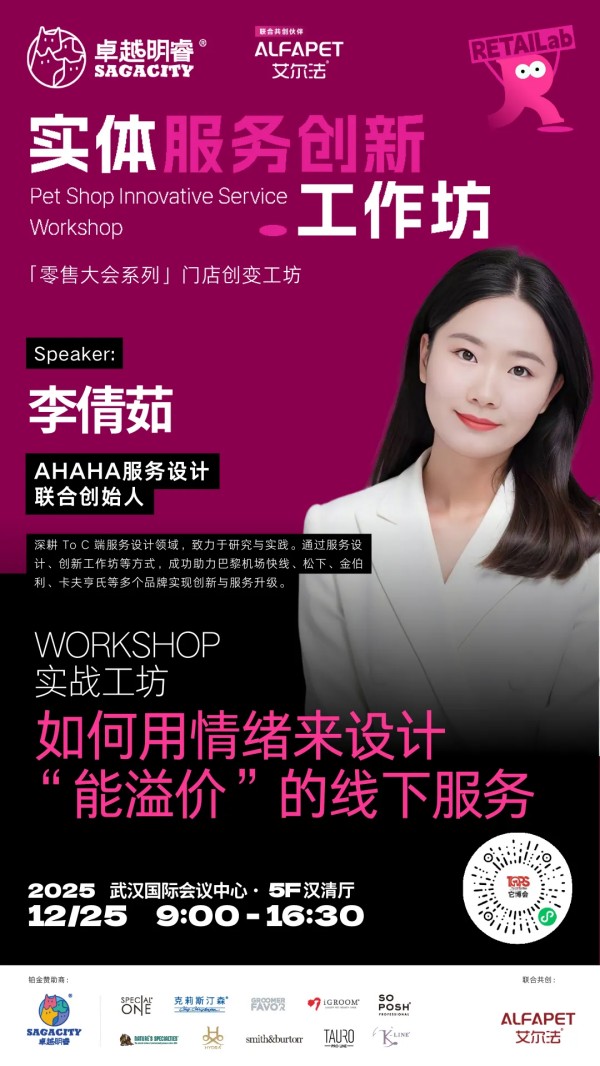 为此,2025中国宠业零售大会,特别带来由卓越明睿冠名,艾尔法联合呈现实体服务创新工作坊。我们将摈弃空谈,聚焦实战,这里有全国线下宠物服务方面一线经营的佼佼者毫无保留的分享,更首次系统性地引入"实战工作坊",让带来的每一个困惑,在现场找到答案。